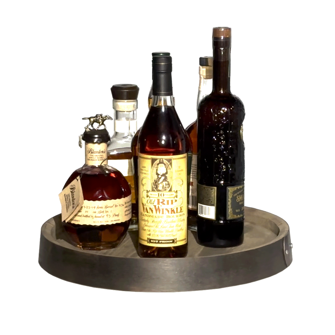 Full rotating "lazy susan" design makes it easy to access your bottle collection. The barrel top sits on a ball-bearing platform for smooth and easy rotation